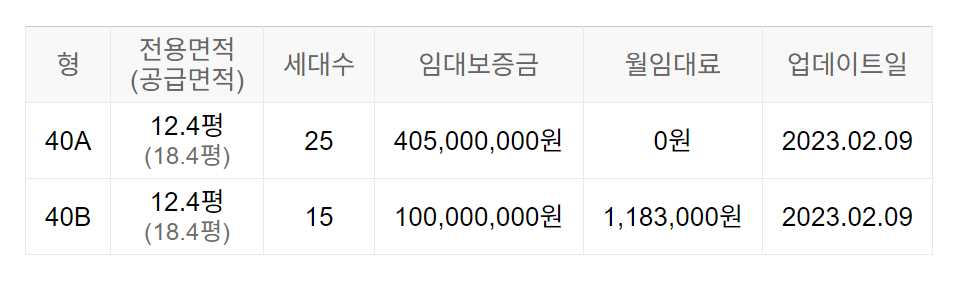 임대보증금 및 월 임대료는 입주자 모집공고일 기준이며, 보증금 최대 전환 시 변동될 수 있습니다.