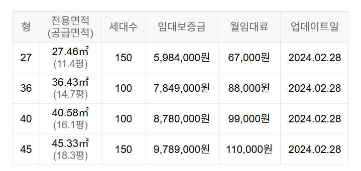 임대보증금 및 월 임대료는 입주자 모집공고일 기준이며, 보증금 최대 전환 시 변동될 수 있습니다.