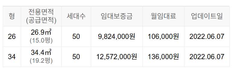 임대보증금 및 월 임대료는 입주자 모집공고일 기준이며, 보증금 최대 전환 시 변동될 수 있습니다.