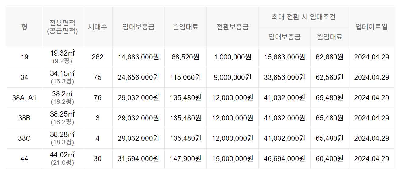 임대보증금 및 월 임대료는 입주자 모집공고일 기준이며, 보증금 최대 전환 시 변동될 수 있습니다.