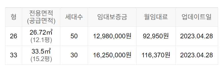 임대보증금 및 월 임대료는 입주자 모집공고일 기준이며, 보증금 최대 전환 시 변동될 수 있습니다.