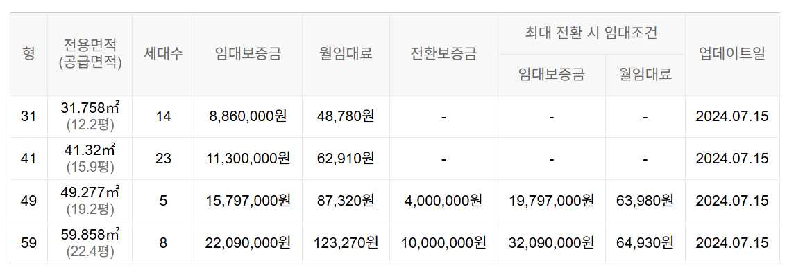 임대보증금 및 월 임대료는 입주자 모집공고일 기준이며, 보증금 최대 전환 시 변동될 수 있습니다.