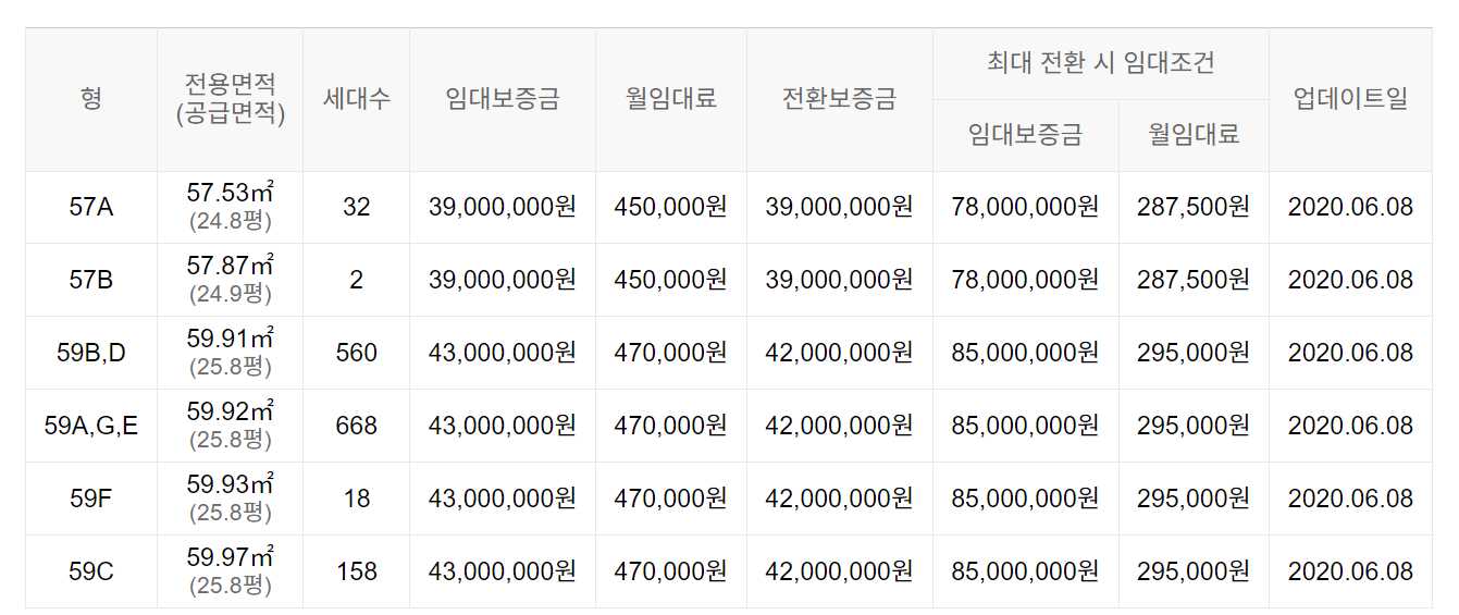 임대보증금 및 월 임대료는 입주자 모집공고일 기준이며, 보증금 최대 전환 시 변동될 수 있습니다.
