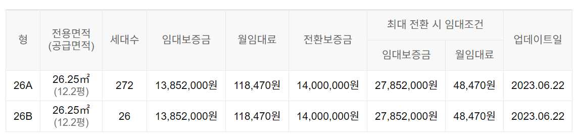 임대보증금 및 월 임대료는 입주자 모집공고일 기준이며, 보증금 최대 전환 시 변동될 수 있습니다.