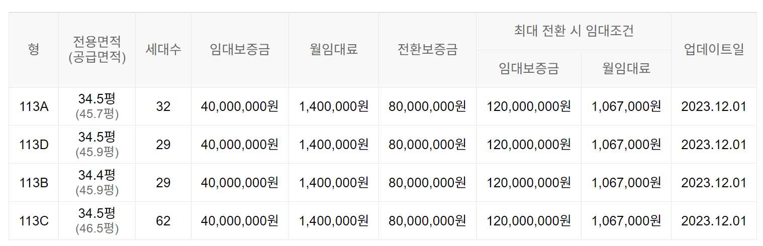임대보증금 및 월 임대료는 입주자 모집공고일 기준이며, 보증금 최대 전환 시 변동될 수 있습니다.