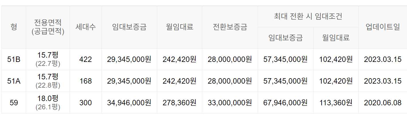 임대보증금 및 월 임대료는 입주자 모집공고일 기준이며, 보증금 최대 전환 시 변동될 수 있습니다.