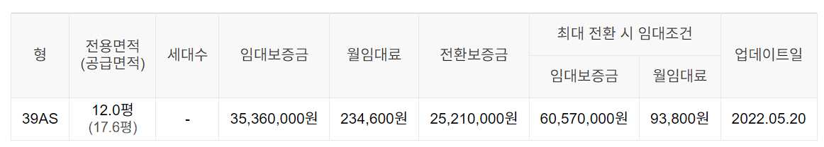 임대보증금 및 월 임대료는 입주자 모집공고일 기준이며, 보증금 최대 전환 시 변동될 수 있습니다.