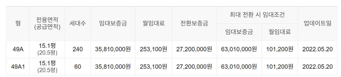 임대보증금 및 월 임대료는 입주자 모집공고일 기준이며, 보증금 최대 전환 시 변동될 수 있습니다.