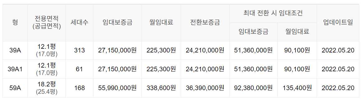 임대보증금 및 월 임대료는 입주자 모집공고일 기준이며, 보증금 최대 전환 시 변동될 수 있습니다.