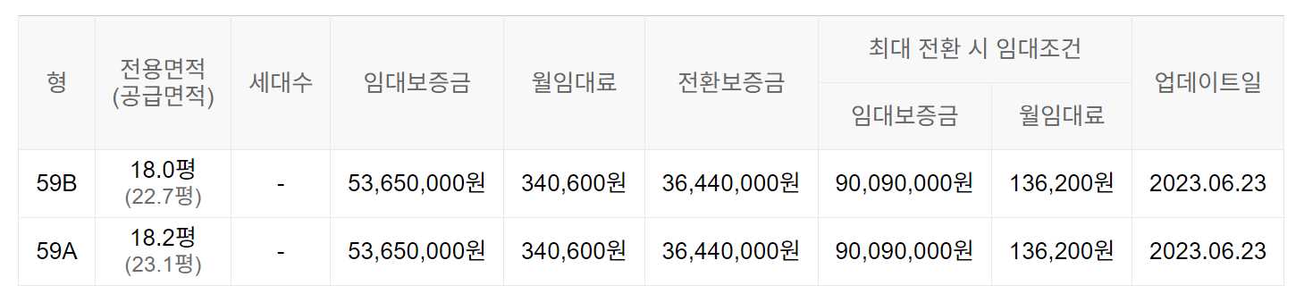 임대보증금 및 월 임대료는 입주자 모집공고일 기준이며, 보증금 최대 전환 시 변동될 수 있습니다.