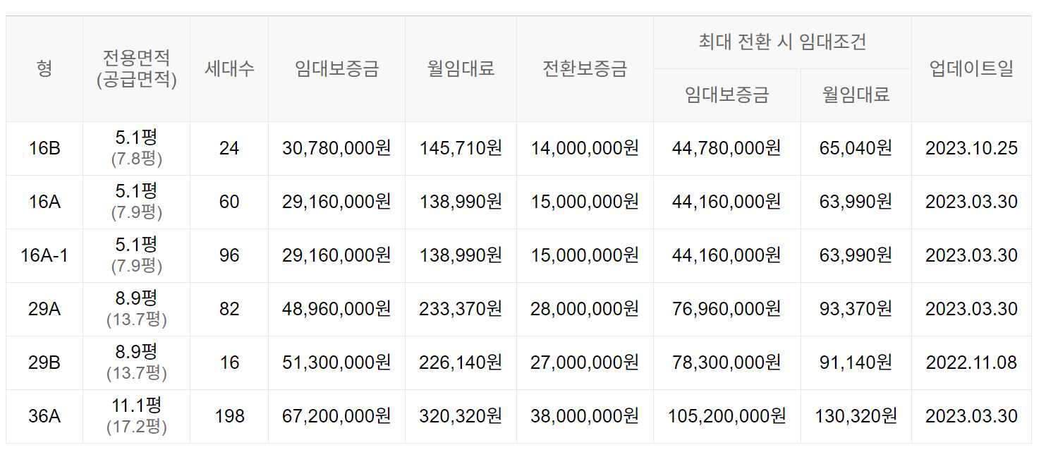 임대보증금 및 월 임대료는 입주자 모집공고일 기준이며, 보증금 최대 전환 시 변동될 수 있습니다.