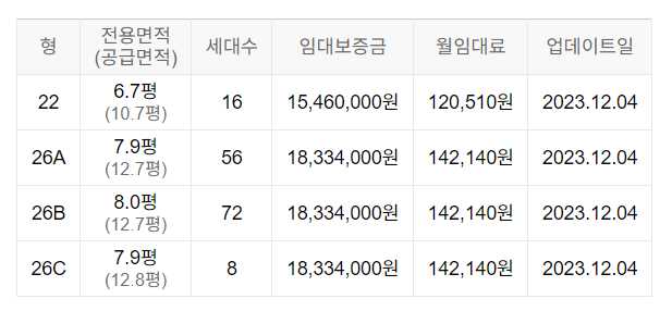 임대보증금 및 월 임대료는 입주자 모집공고일 기준이며, 보증금 최대 전환 시 변동될 수 있습니다.