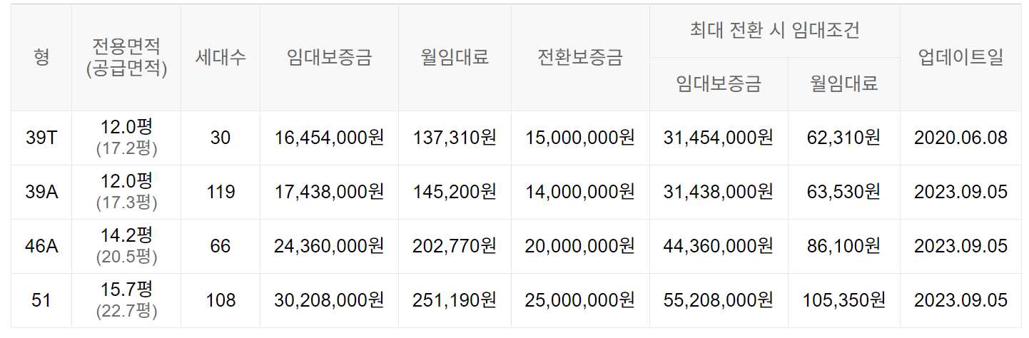 임대보증금 및 월 임대료는 입주자 모집공고일 기준이며, 보증금 최대 전환 시 변동될 수 있습니다.
