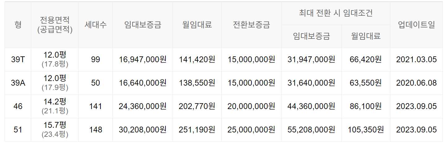임대보증금 및 월 임대료는 입주자 모집공고일 기준이며, 보증금 최대 전환 시 변동될 수 있습니다.