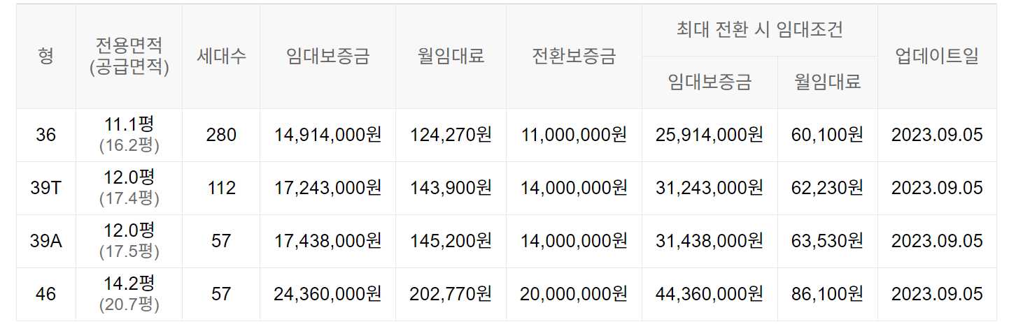 임대보증금 및 월 임대료는 입주자 모집공고일 기준이며, 보증금 최대 전환 시 변동될 수 있습니다.