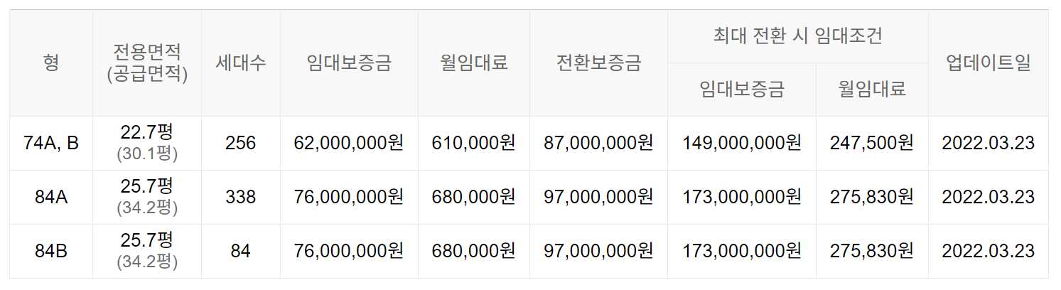 임대보증금 및 월 임대료는 입주자 모집공고일 기준이며, 보증금 최대 전환 시 변동될 수 있습니다.