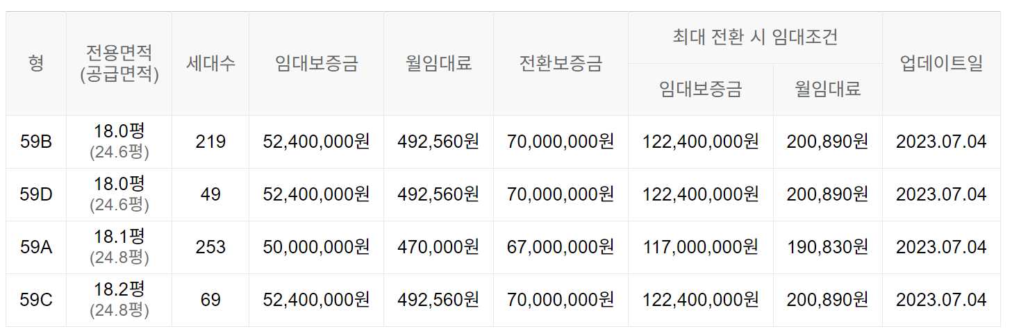 임대보증금 및 월 임대료는 입주자 모집공고일 기준이며, 보증금 최대 전환 시 변동될 수 있습니다.