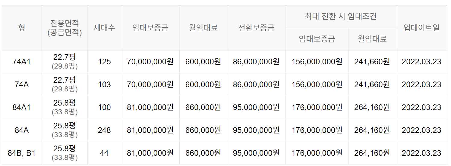 임대보증금 및 월 임대료는 입주자 모집공고일 기준이며, 보증금 최대 전환 시 변동될 수 있습니다.
