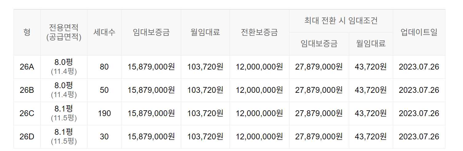 임대보증금 및 월 임대료는 입주자 모집공고일 기준이며, 보증금 최대 전환 시 변동될 수 있습니다.