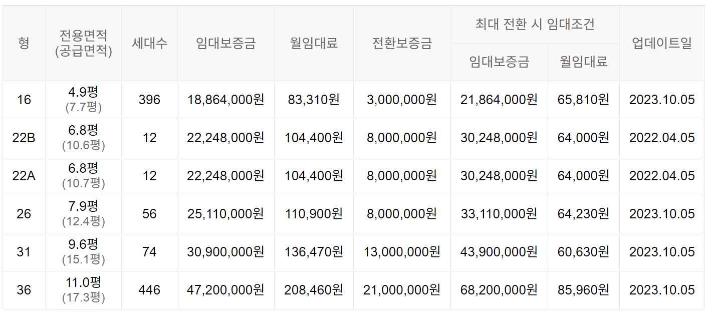 임대보증금 및 월 임대료는 입주자 모집공고일 기준이며, 보증금 최대 전환 시 변동될 수 있습니다.