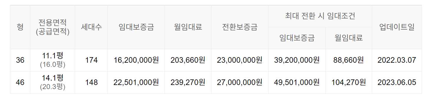 임대보증금 및 월 임대료는 입주자 모집공고일 기준이며, 보증금 최대 전환 시 변동될 수 있습니다.