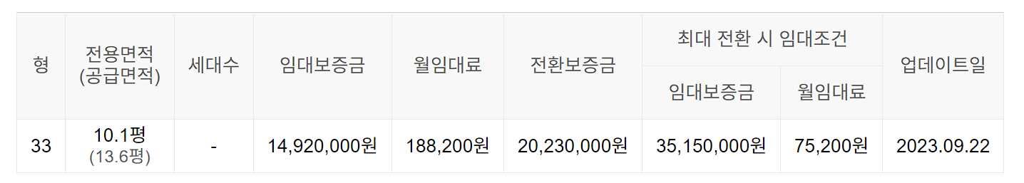 임대보증금 및 월 임대료는 입주자 모집공고일 기준이며, 보증금 최대 전환 시 변동될 수 있습니다.