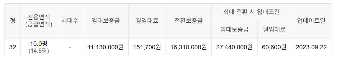 임대보증금 및 월 임대료는 입주자 모집공고일 기준이며, 보증금 최대 전환 시 변동될 수 있습니다.