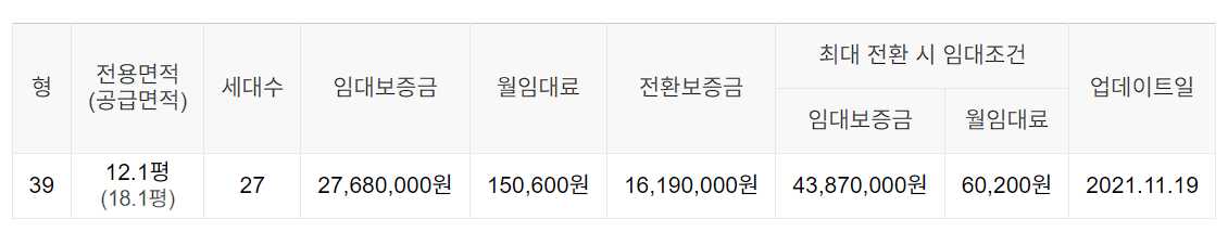 임대보증금 및 월 임대료는 입주자 모집공고일 기준이며, 보증금 최대 전환 시 변동될 수 있습니다.