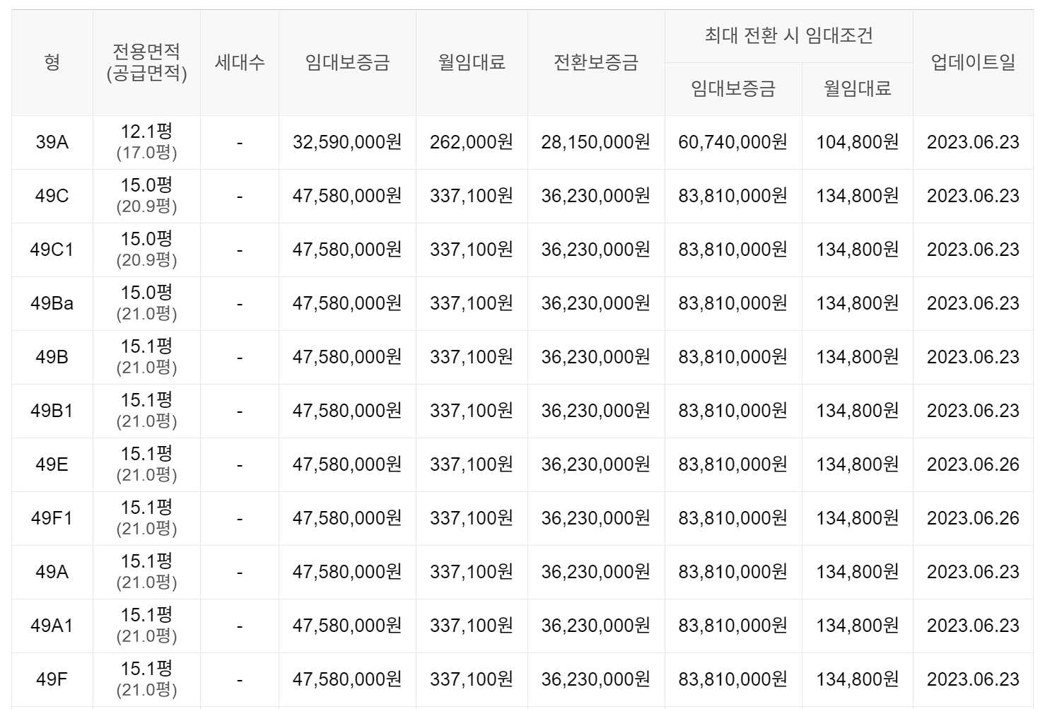 임대보증금 및 월 임대료는 입주자 모집공고일 기준이며, 보증금 최대 전환 시 변동될 수 있습니다.
