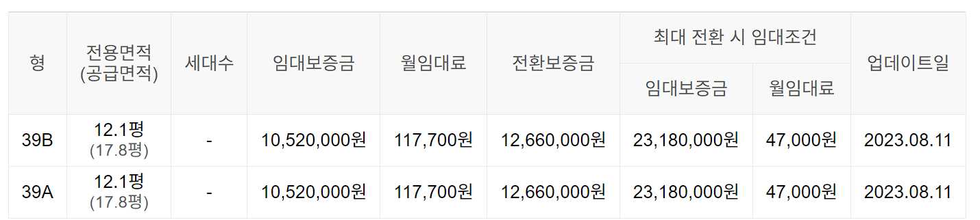 임대보증금 및 월 임대료는 입주자 모집공고일 기준이며, 보증금 최대 전환 시 변동될 수 있습니다.