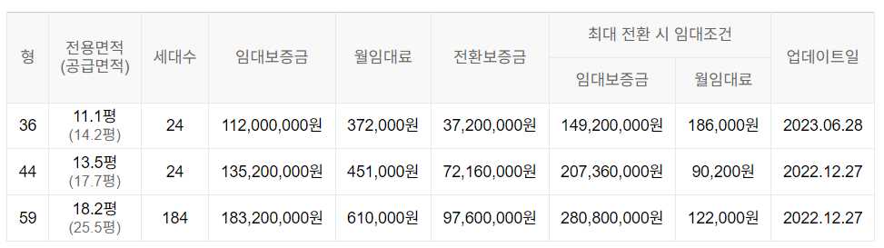 임대보증금 및 월 임대료는 입주자 모집공고일 기준이며, 보증금 최대 전환 시 변동될 수 있습니다.
