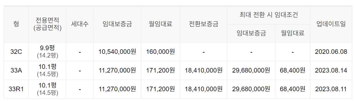 임대보증금 및 월 임대료는 입주자 모집공고일 기준이며, 보증금 최대 전환 시 변동될 수 있습니다.
