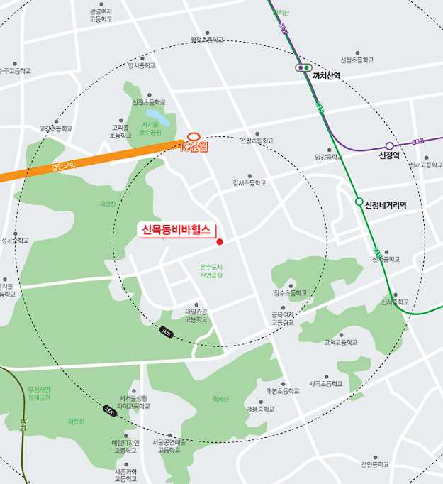 신목동비바힐스는 서울 양천구 신월IC, 온수도시자연공원 근처에 위치하고 있습니다.
