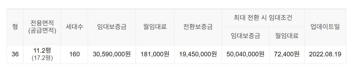 임대보증금 및 월 임대료는 입주자 모집공고일 기준이며, 보증금 최대 전환 시 변동될 수 있습니다.