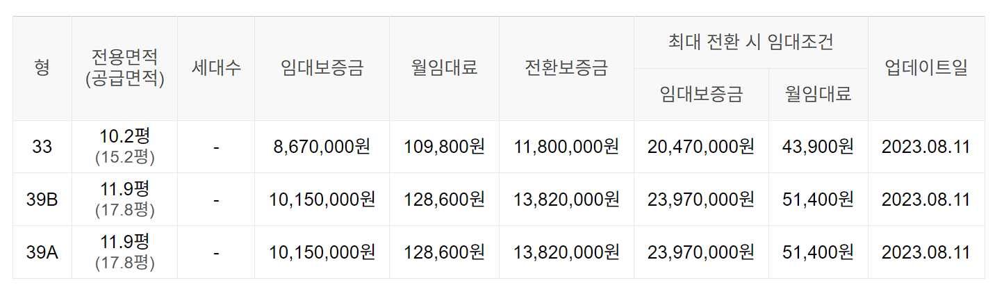 임대보증금 및 월 임대료는 입주자 모집공고일 기준이며, 보증금 최대 전환 시 변동될 수 있습니다.