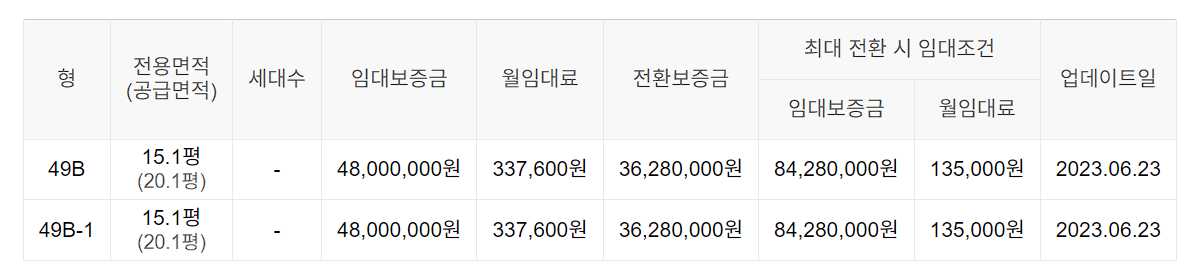 임대보증금 및 월 임대료는 입주자 모집공고일 기준이며, 보증금 최대 전환 시 변동될 수 있습니다.