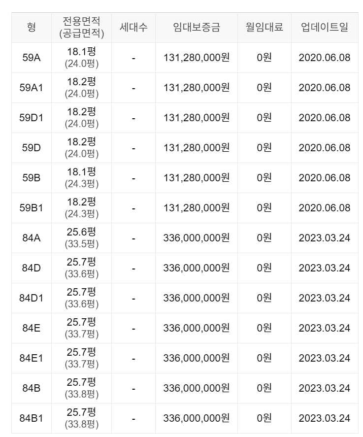 임대보증금 및 월 임대료는 입주자 모집공고일 기준이며, 보증금 최대 전환 시 변동될 수 있습니다.