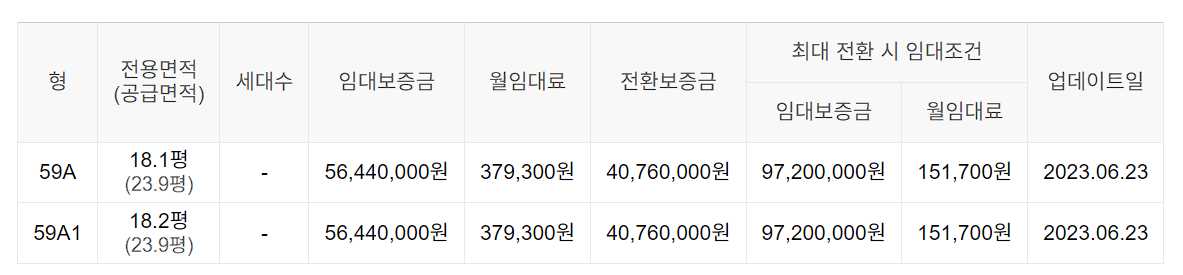 임대보증금 및 월 임대료는 입주자 모집공고일 기준이며, 보증금 최대 전환 시 변동될 수 있습니다.