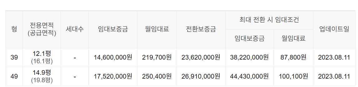 임대보증금 및 월 임대료는 입주자 모집공고일 기준이며, 보증금 최대 전환 시 변동될 수 있습니다.