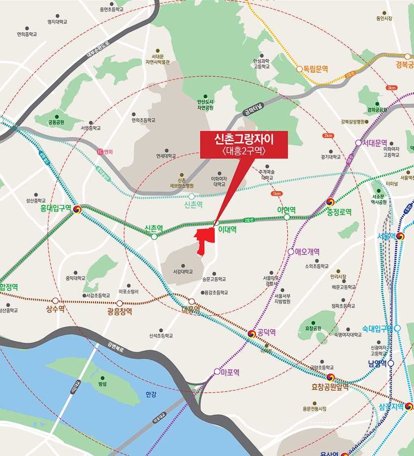 마포그랑자이 (구 신촌그랑자이)는 서울 마포구 이대역 근처에 위치하고 있습니다.