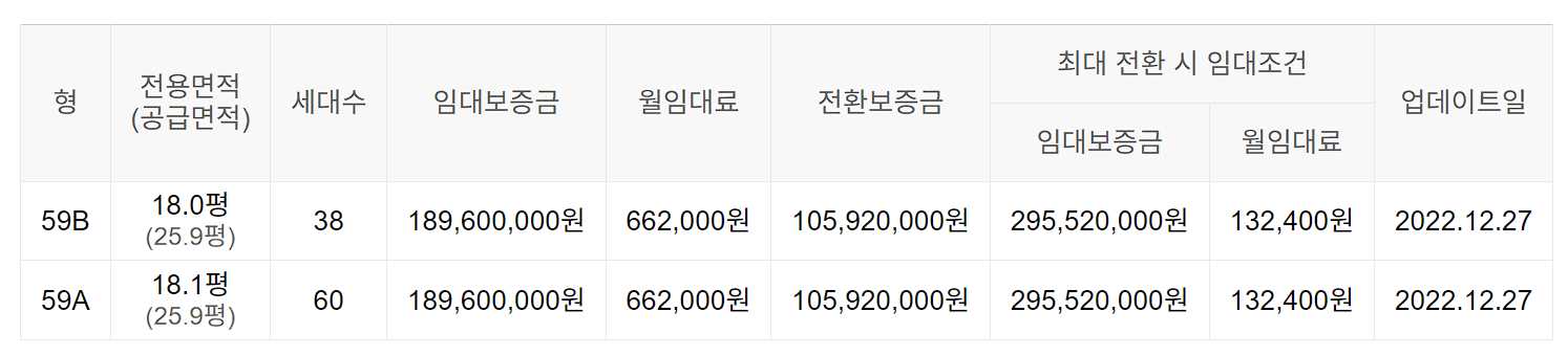 임대보증금 및 월 임대료는 입주자 모집공고일 기준이며, 보증금 최대 전환 시 변동될 수 있습니다.