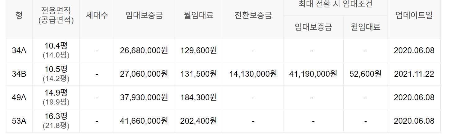 임대보증금 및 월 임대료는 입주자 모집공고일 기준이며, 보증금 최대 전환 시 변동될 수 있습니다.
