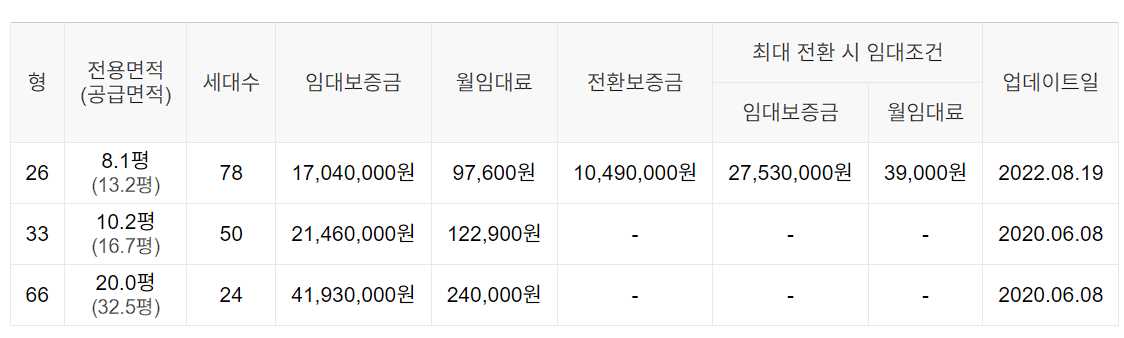 임대보증금 및 월 임대료는 입주자 모집공고일 기준이며, 보증금 최대 전환 시 변동될 수 있습니다.