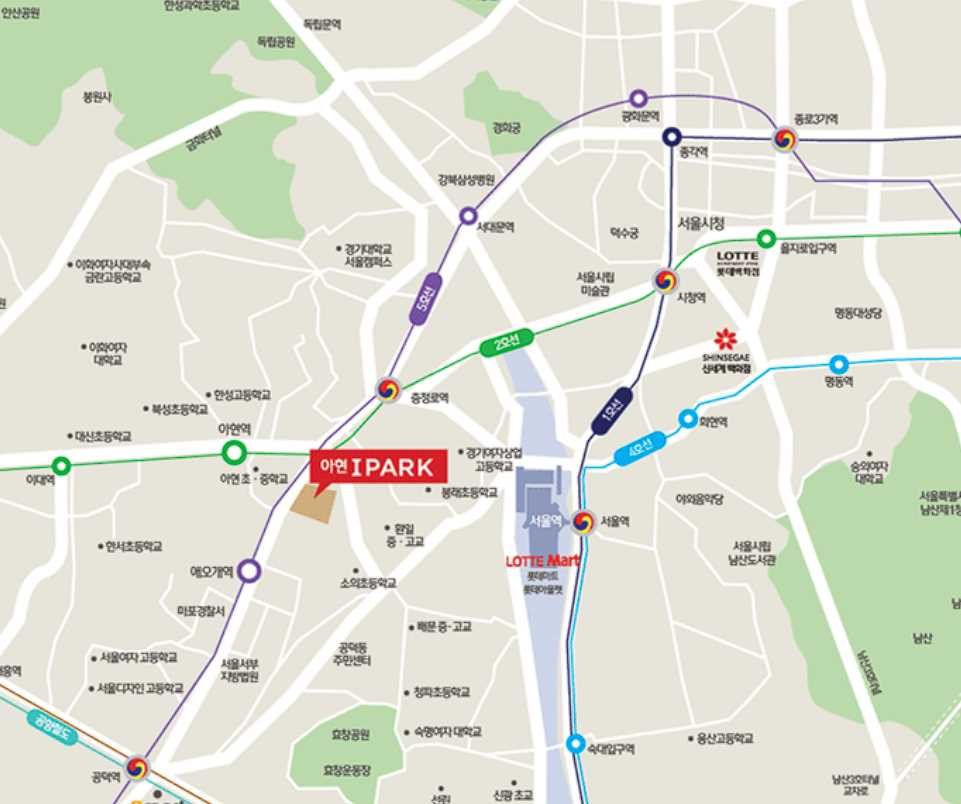 아현아이파크는 서울 마포구 아현역, 애오개역 근처에 위치하고 있습니다.