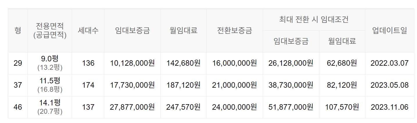 임대보증금 및 월 임대료는 입주자 모집공고일 기준이며, 보증금 최대 전환 시 변동될 수 있습니다.