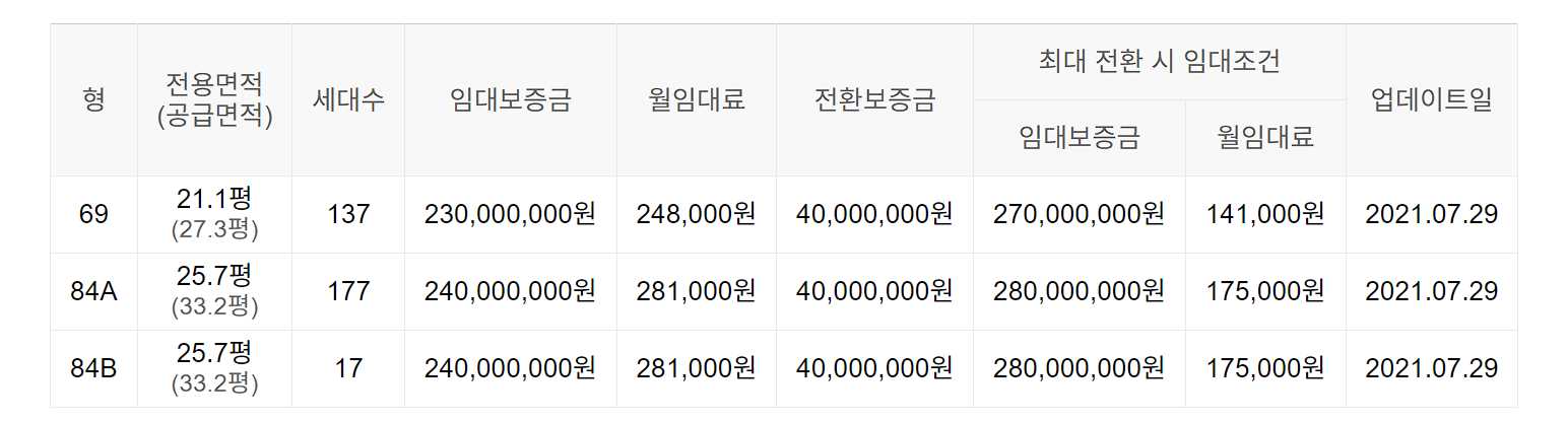 임대보증금 및 월 임대료는 입주자 모집공고일 기준이며, 보증금 최대 전환 시 변동될 수 있습니다.
