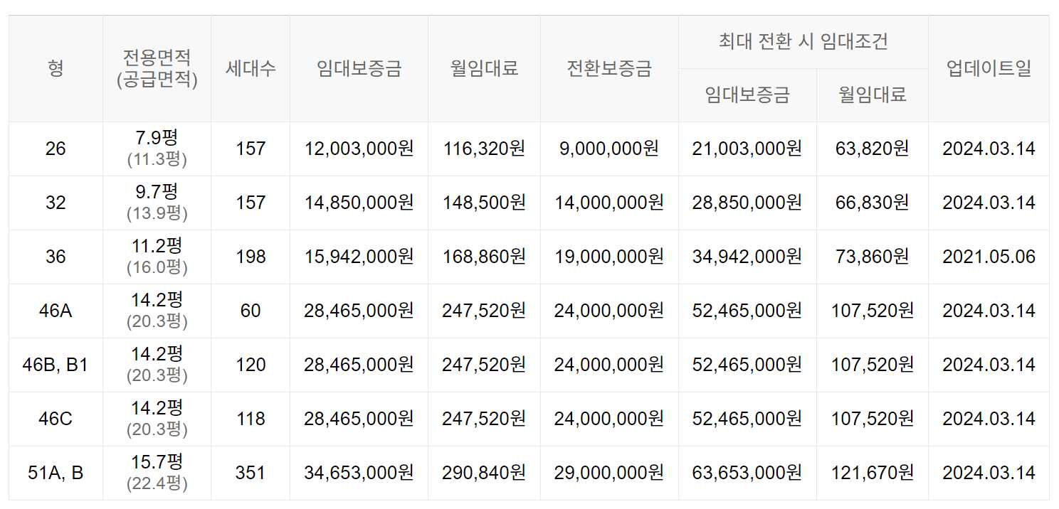 임대보증금 및 월 임대료는 입주자 모집공고일 기준이며, 보증금 최대 전환 시 변동될 수 있습니다.