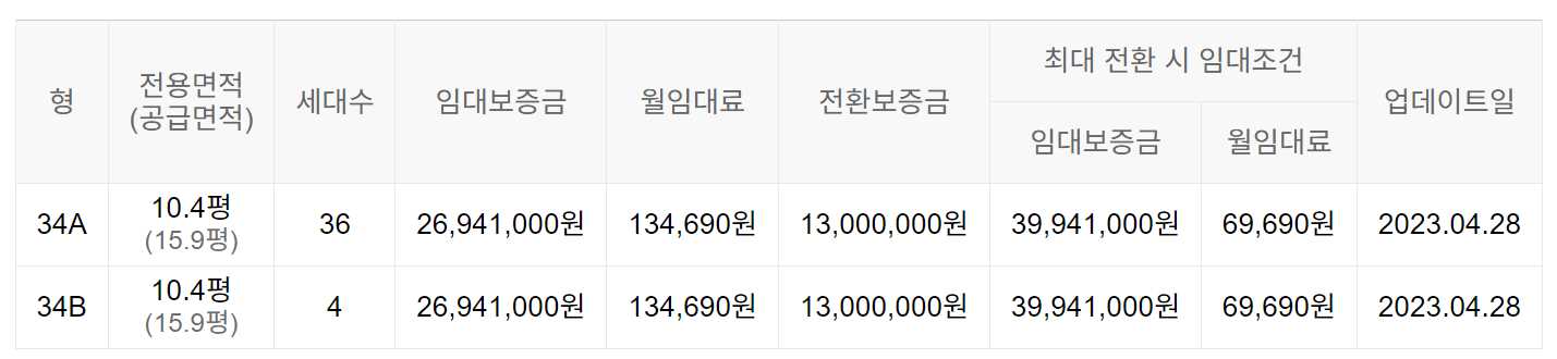 임대보증금 및 월 임대료는 입주자 모집공고일 기준이며, 보증금 최대 전환 시 변동될 수 있습니다.