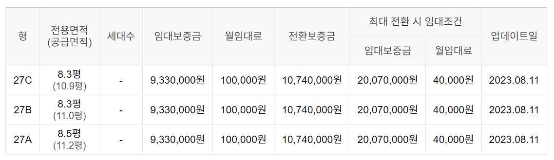 임대보증금 및 월 임대료는 입주자 모집공고일 기준이며, 보증금 최대 전환 시 변동될 수 있습니다.
