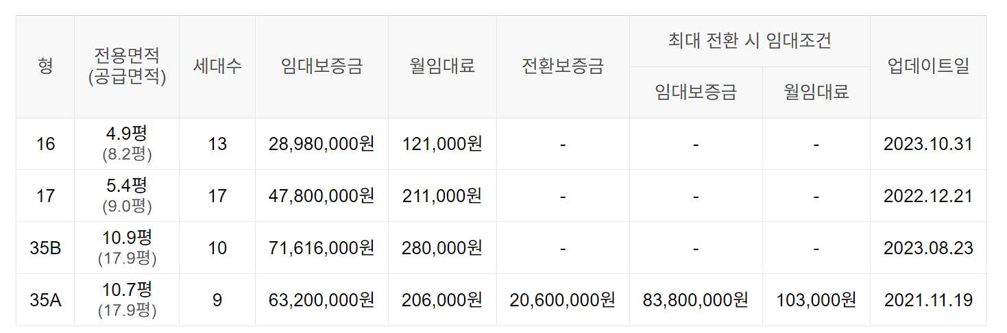 임대보증금 및 월 임대료는 입주자 모집공고일 기준이며, 보증금 최대 전환 시 변동될 수 있습니다.